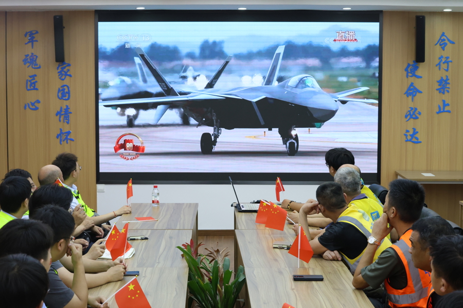 工友青山说:“核导弹、无人飞机、装甲车、坦克车陆续登场,先进的武器装备展现我国科技的进步与强大,激励着我们每一个人。”