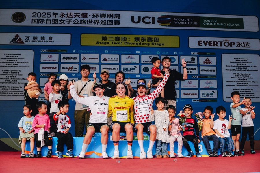 昨天,为期三天的2025年环崇明岛国际自盟女子公路世界巡回赛落幕。除了世界顶级车手,来自全国各地的业余骑行爱好者乃至小朋友,都在这场自行车盛宴中,在丰富多彩的各类赛事活动中享受骑行的快乐、感受生态岛的建设。