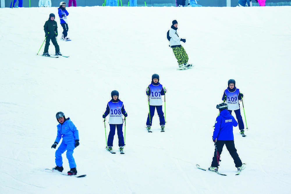 冰雪爱好者在正定“热雪奇迹”室内滑雪场练习滑雪。本报记者 张晓峰 摄