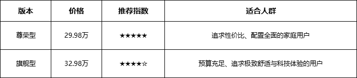 适合人群:这个3电机的动力水平和底盘,搭配舒适性配置整体算是拉满了,这个版本的性价比也非常高,该有的配置也都有了。笔者最推荐这个版本。