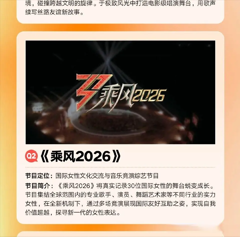 《乘风2026》应该会在披哥和歌手三大音综并驾齐驱中脱颖而出。