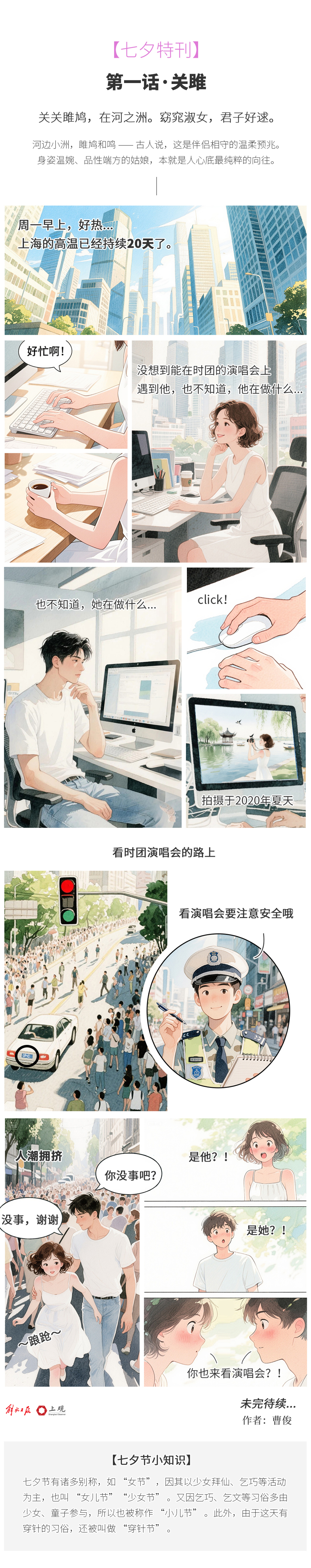 “关关雎鸠,在河之洲”:河边小洲上,雎鸠鸟 “关关” 和鸣。古人以鸟的和鸣象征伴侣和谐,既勾勒出宁静生机的画面,也为情感表达铺垫温柔氛围 —— 就像故事里小美与小帅重逢时,人潮喧闹成背景,只剩两人的默契共振。