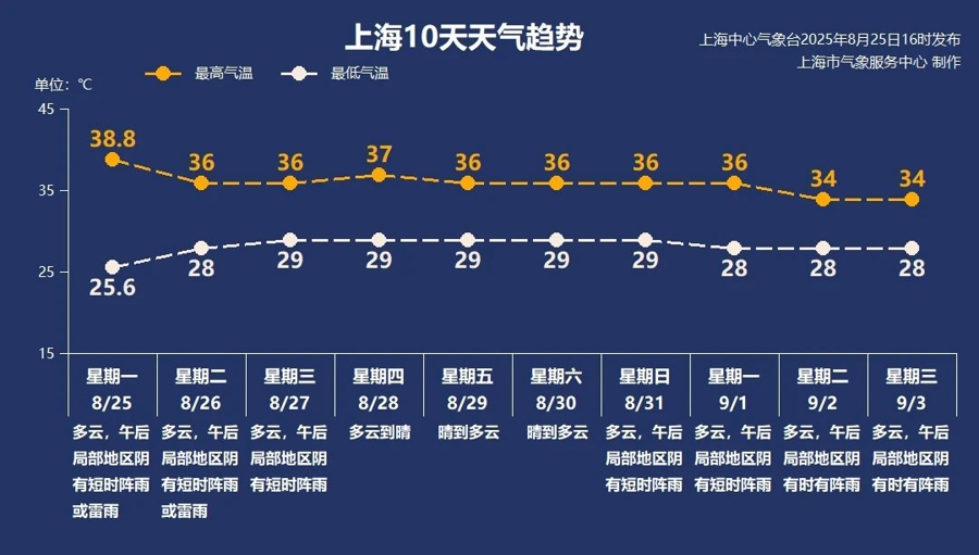 眼看开学临近,高温依旧顽固。但好消息是,下月初副热带高压或有“松动”,届时申城最高气温有望跌破35℃大关。